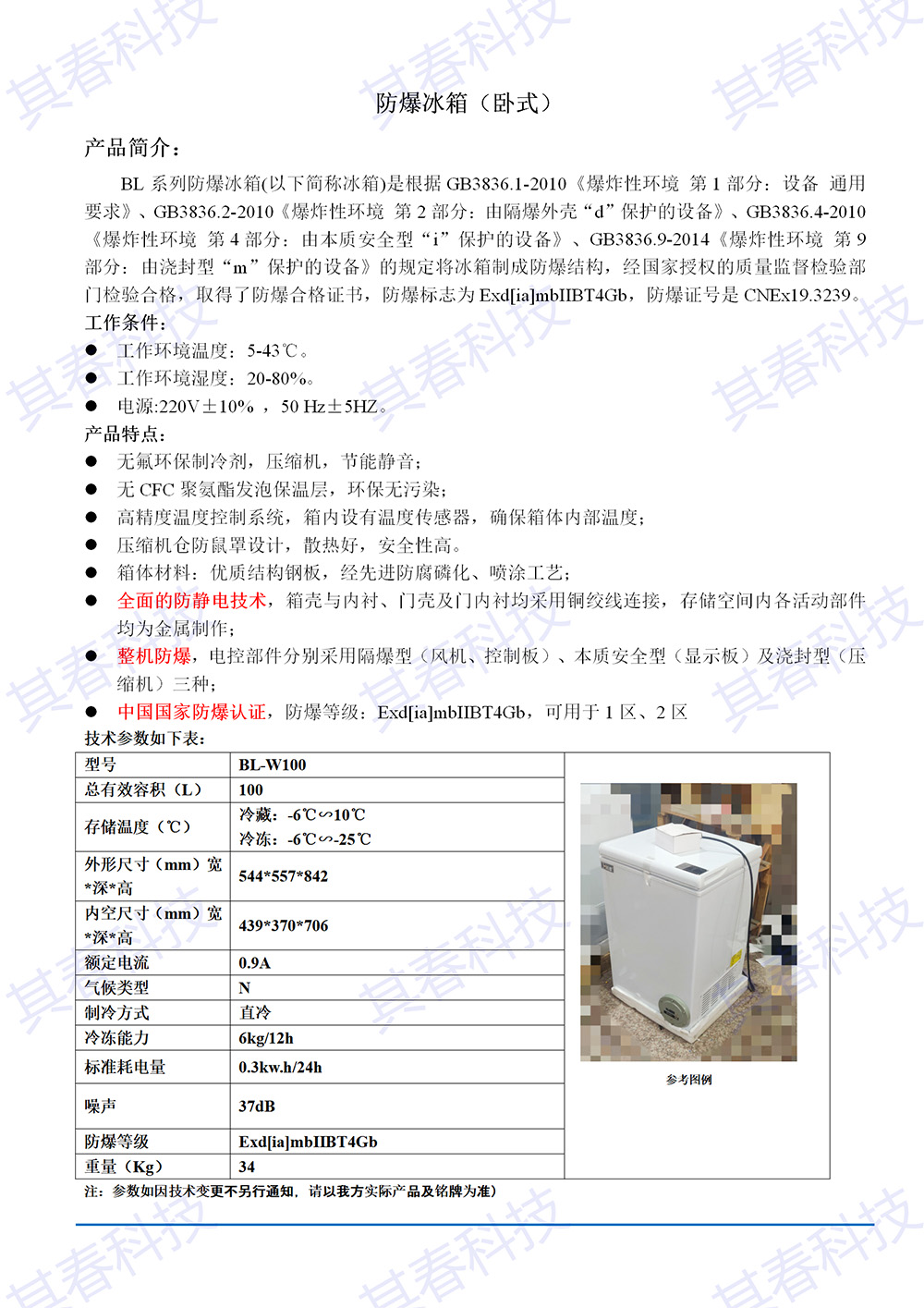 BL-W100卧式冷藏冷冻转换柜防爆冰柜
