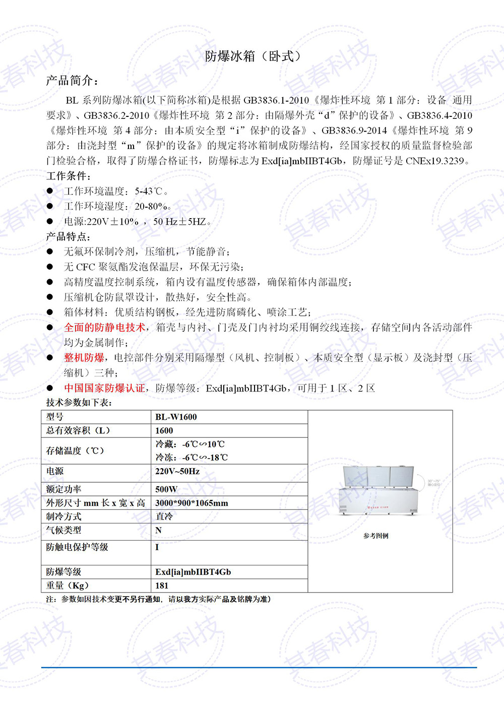 10℃∽-25℃可调防爆冰柜BL-W515