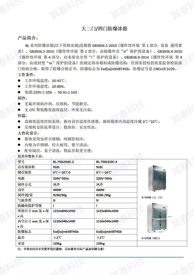 BL-750L910C-2对开门防爆冰箱